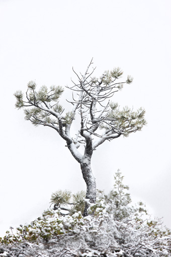 Snowy tree on canyon edge, Bryce Canyon