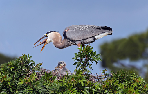 Great Blue Heron regurgitating fish
