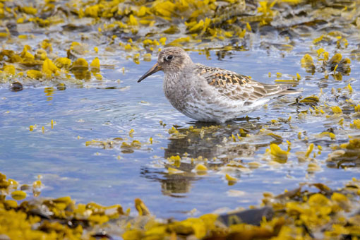 Purple Sandpiper feeding in seaweed, Kirkjufell