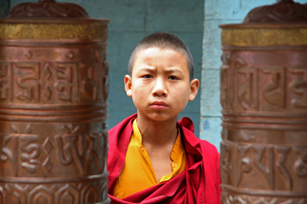 Young Monk And Prayer Wheels, Gangtok Monastery