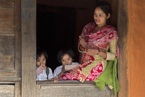 Mother and Children at doorway, Old Bazaar, Pokhara