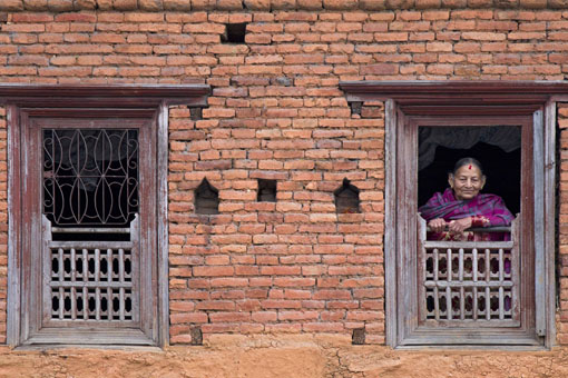 Old woman at window, The Old Bazaar, Pokhara