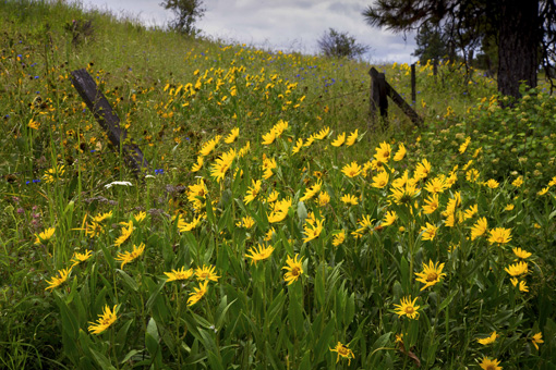 Fence and Douglas Helianthella , Joseph Pass, Oregon