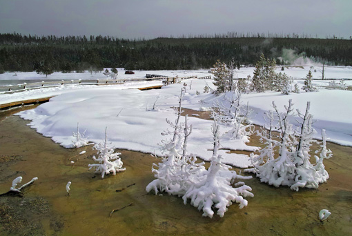 Frozen pines, Biscuit Basin