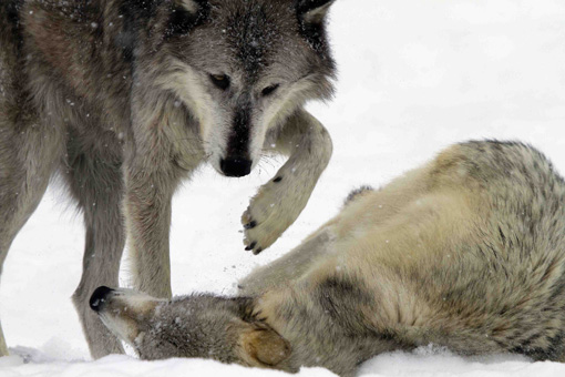 Grey Wolf male accepting dominance